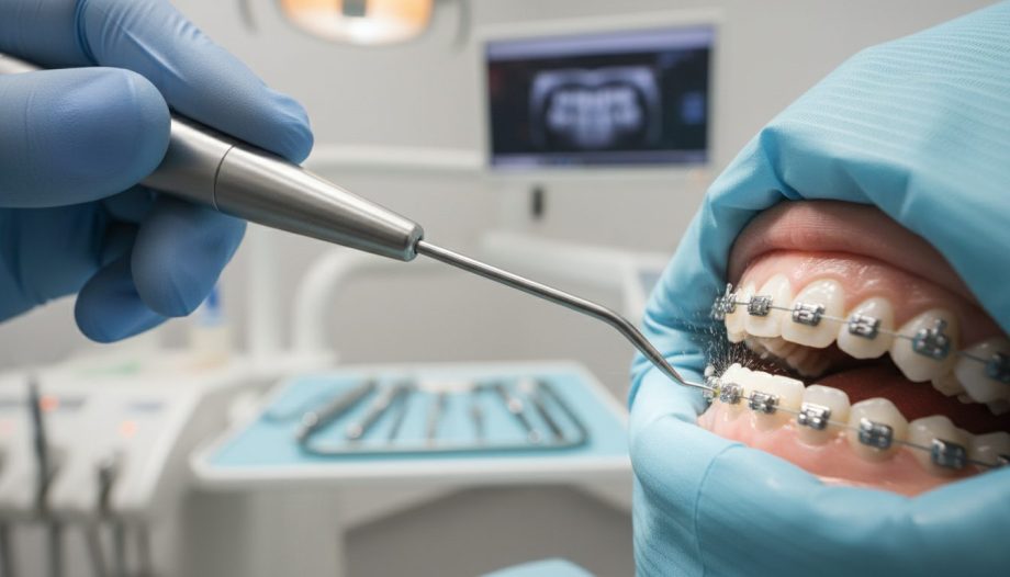 矯正装置の周りに溜まった汚れを専用の器具で取り除き、口腔内を清潔に保ちます。